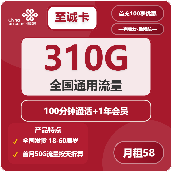 立即办理至诚卡58元包310G通用+100分钟通话📞至诚卡58元包310G通用+100分钟通话官方客服咨询💡办理至诚卡58元包310G通用+100分钟通话前务必先咨询客服!确认套餐资费、激活方式、使用限制等关键信息,避免下单后出现问题!添加...