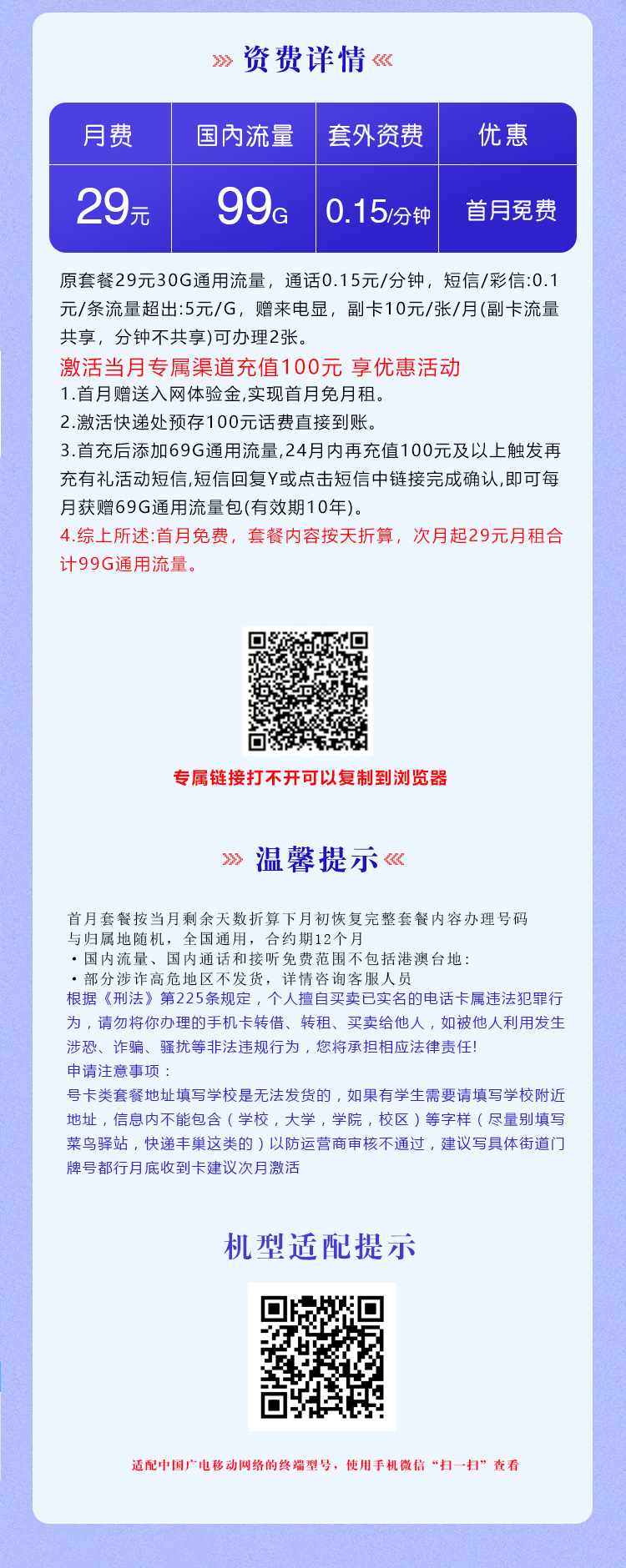 温馨提示:全国通用!点击下方按钮办理广电梦尚卡 【29元99G】,具体权益请查看详情图~