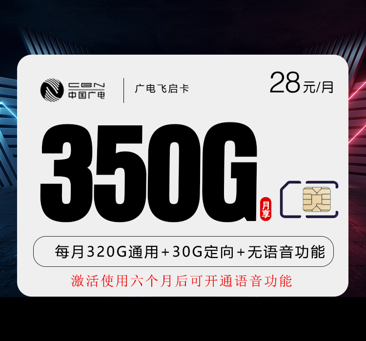 广电飞启卡【28元350G】 流量卡-随身WiFi-宽带官方办理渠道