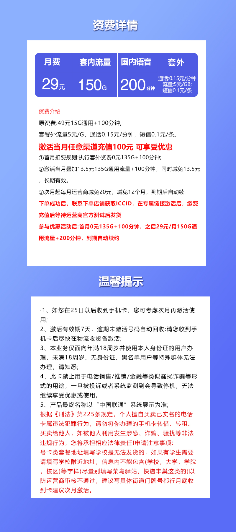 - 核心产品:联通飞焦卡【29元150G+200分钟】(低资费、大流量、全国通用)