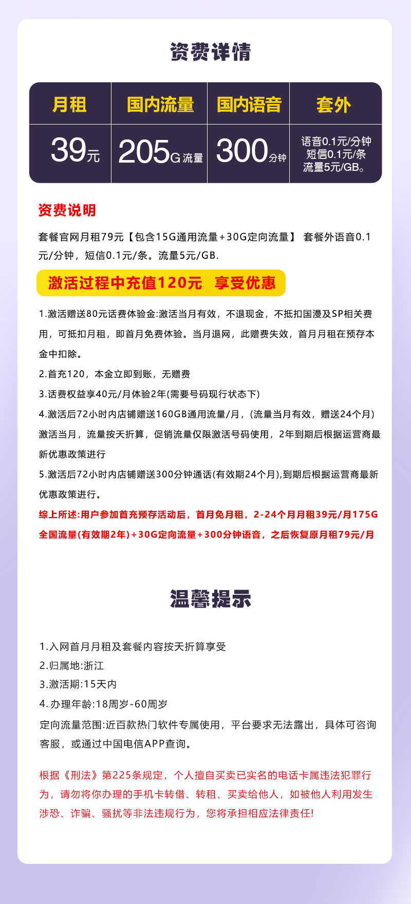 📞 浙江电信39元包月205G实体卡官方客服咨询