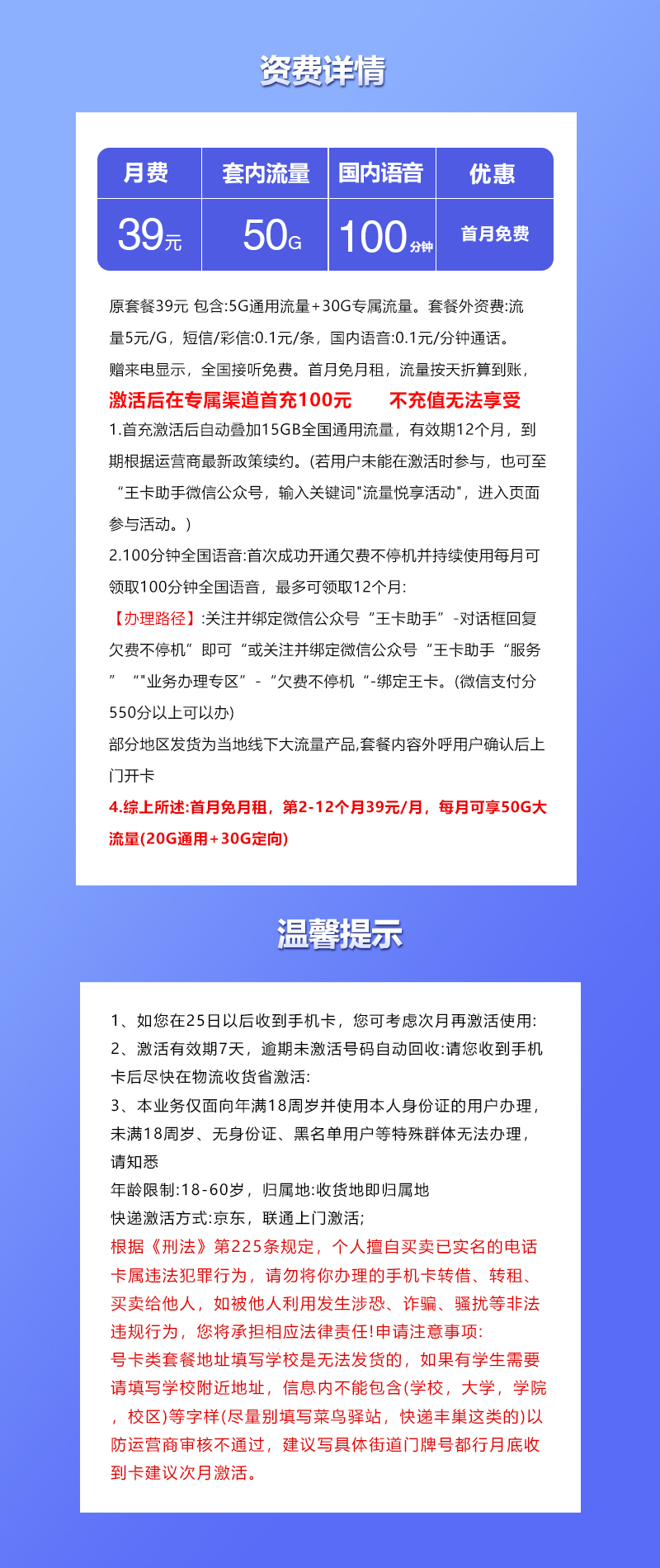 - 资费说明:按套餐标注收费,无隐形消费、无套路、无捆绑